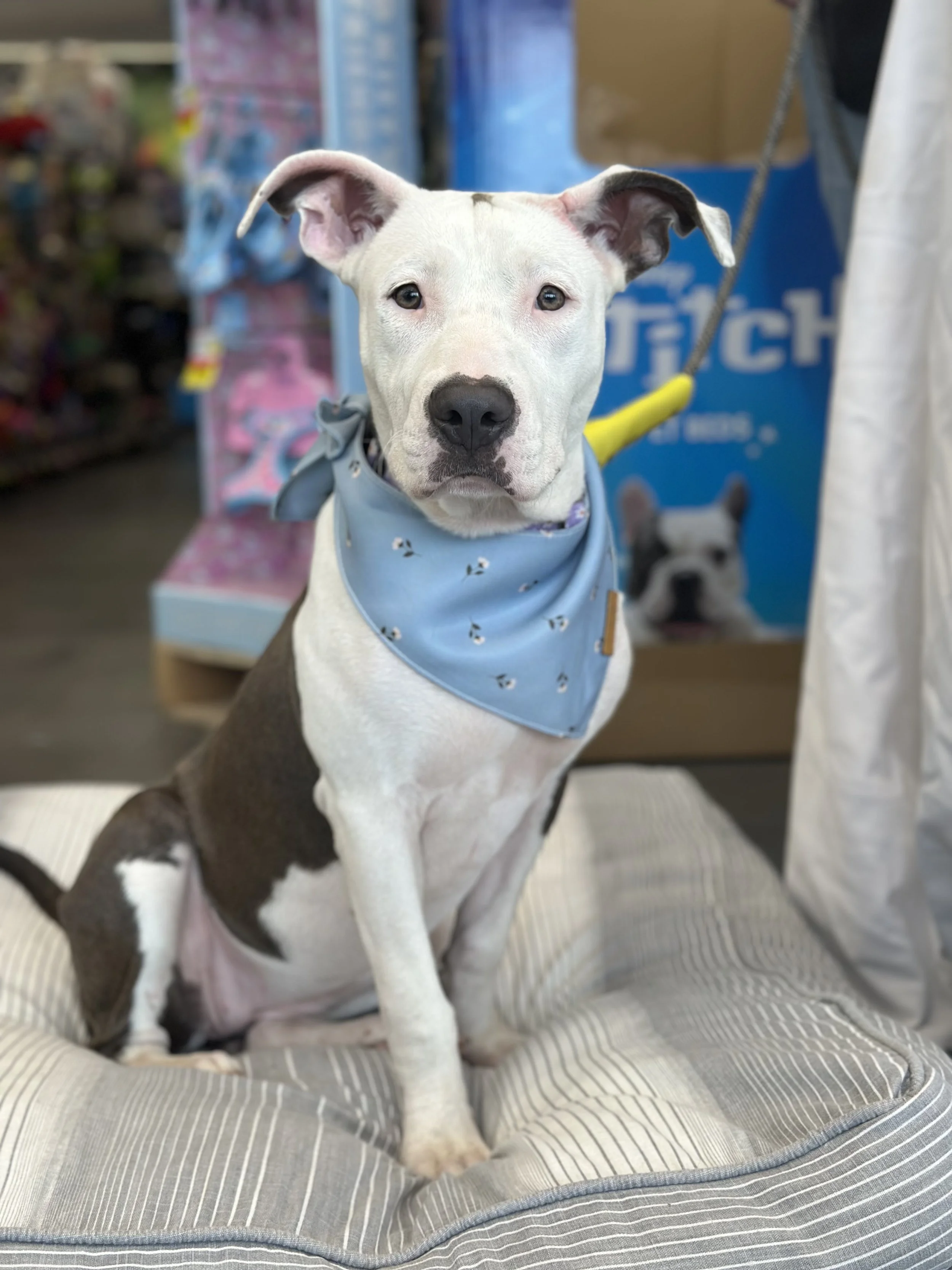 BlueberryAdopted! Pocket pittie of our dreams. An insanely good energy - medium energy but playful with other pups, a total velcro dog with humans. Doesn't love the crate but that's because she loves her people so much!