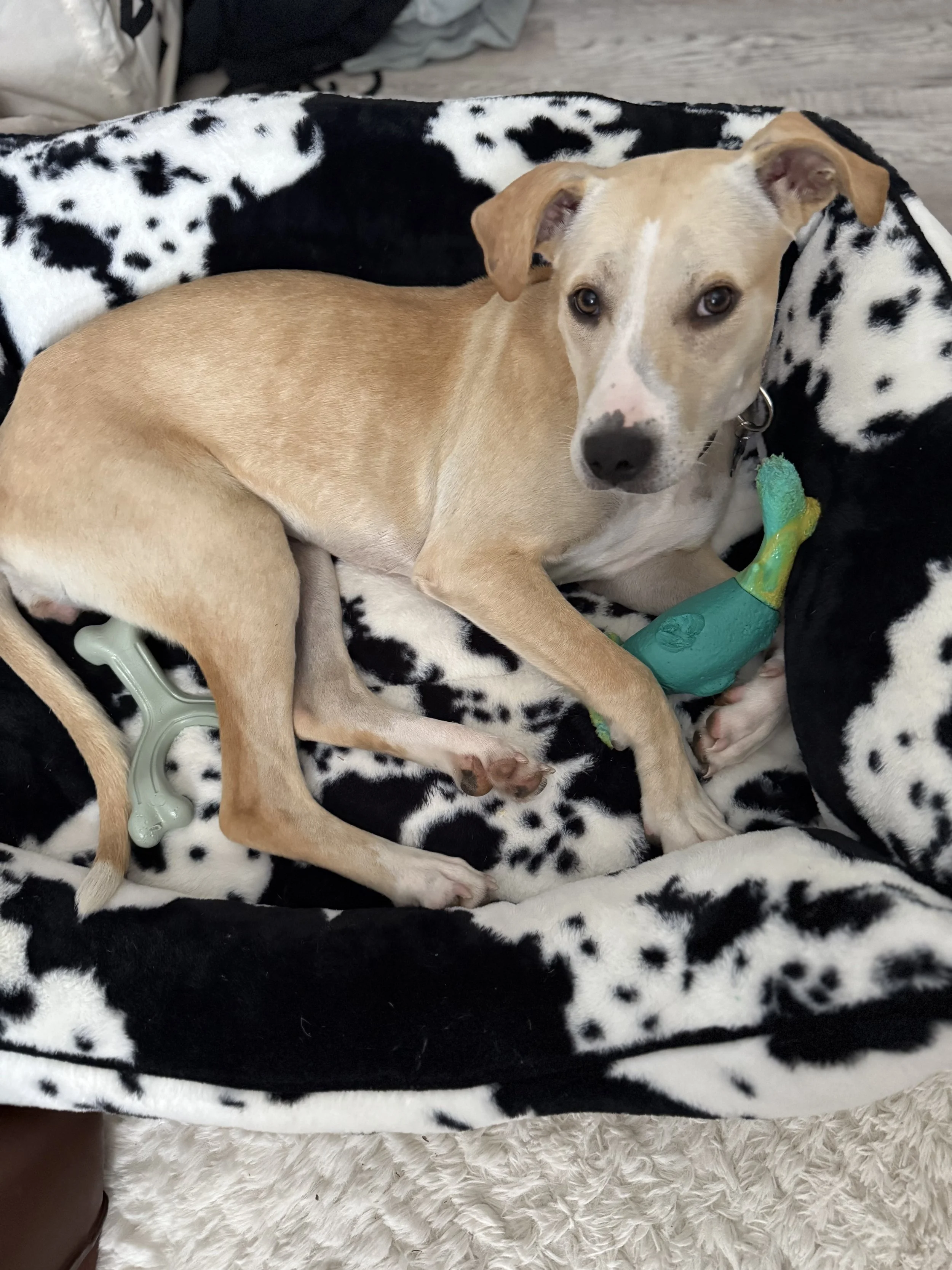 TallulahAdopted! The silliest, cuddliest puppy girl. Long legs, short bod, large ears - what’s not to love?! Great with people, dogs and cats. Typical adorable puppy energy. A whole lotta love in a 17lb package.