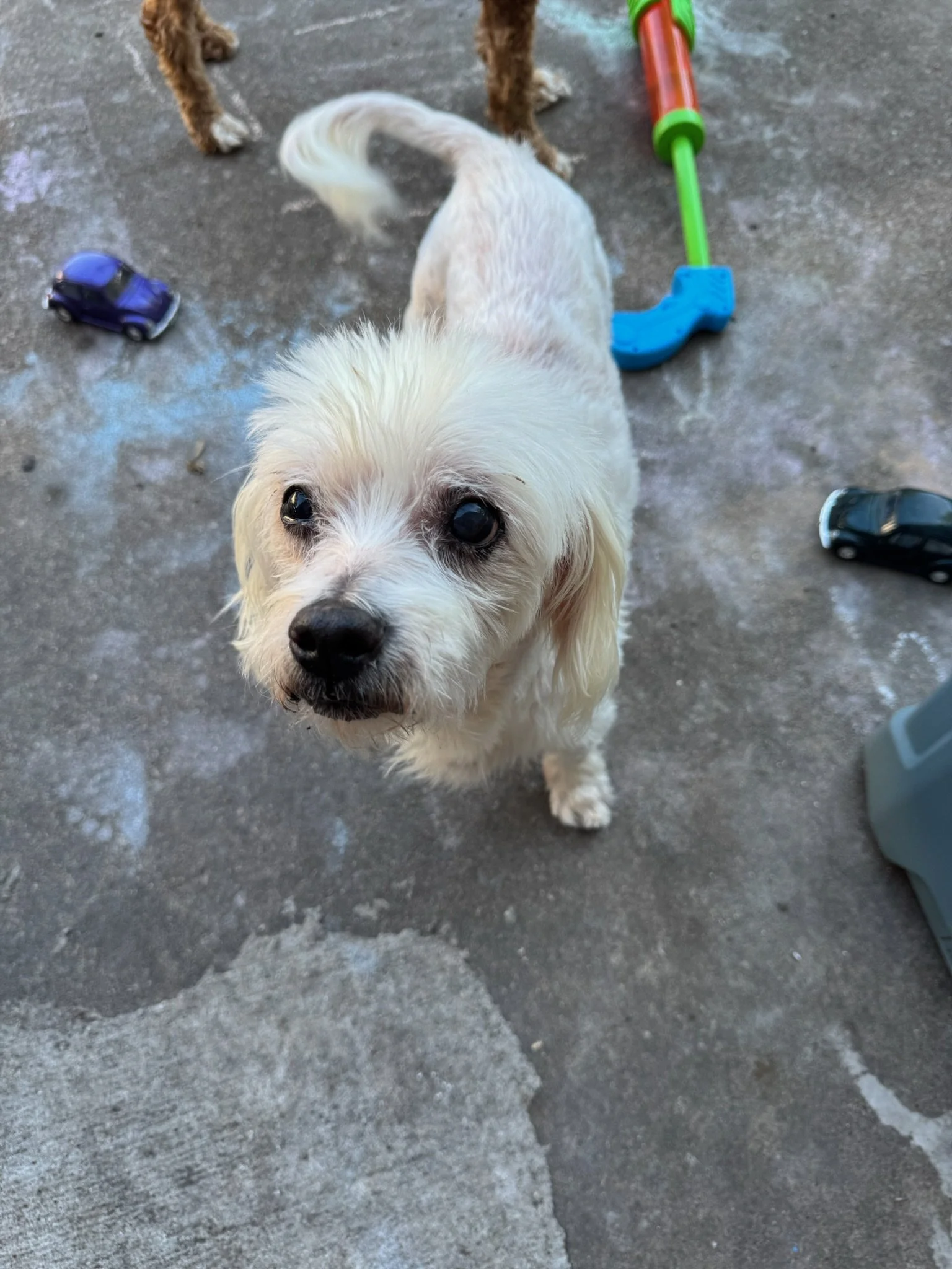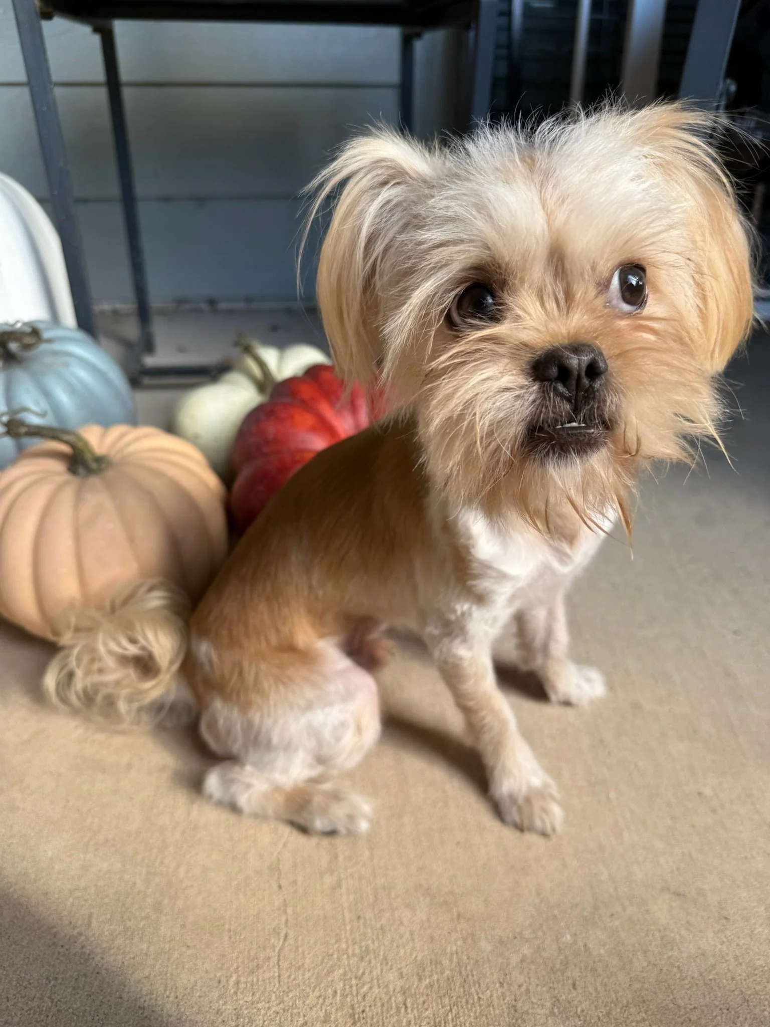 FurbyAdopted! Fluffy real-life little Furby, our abandoned Shih Tzu boy. 2-3 years old, 16lbs, super friendly and adorable. Great with dogs. Great with kids.