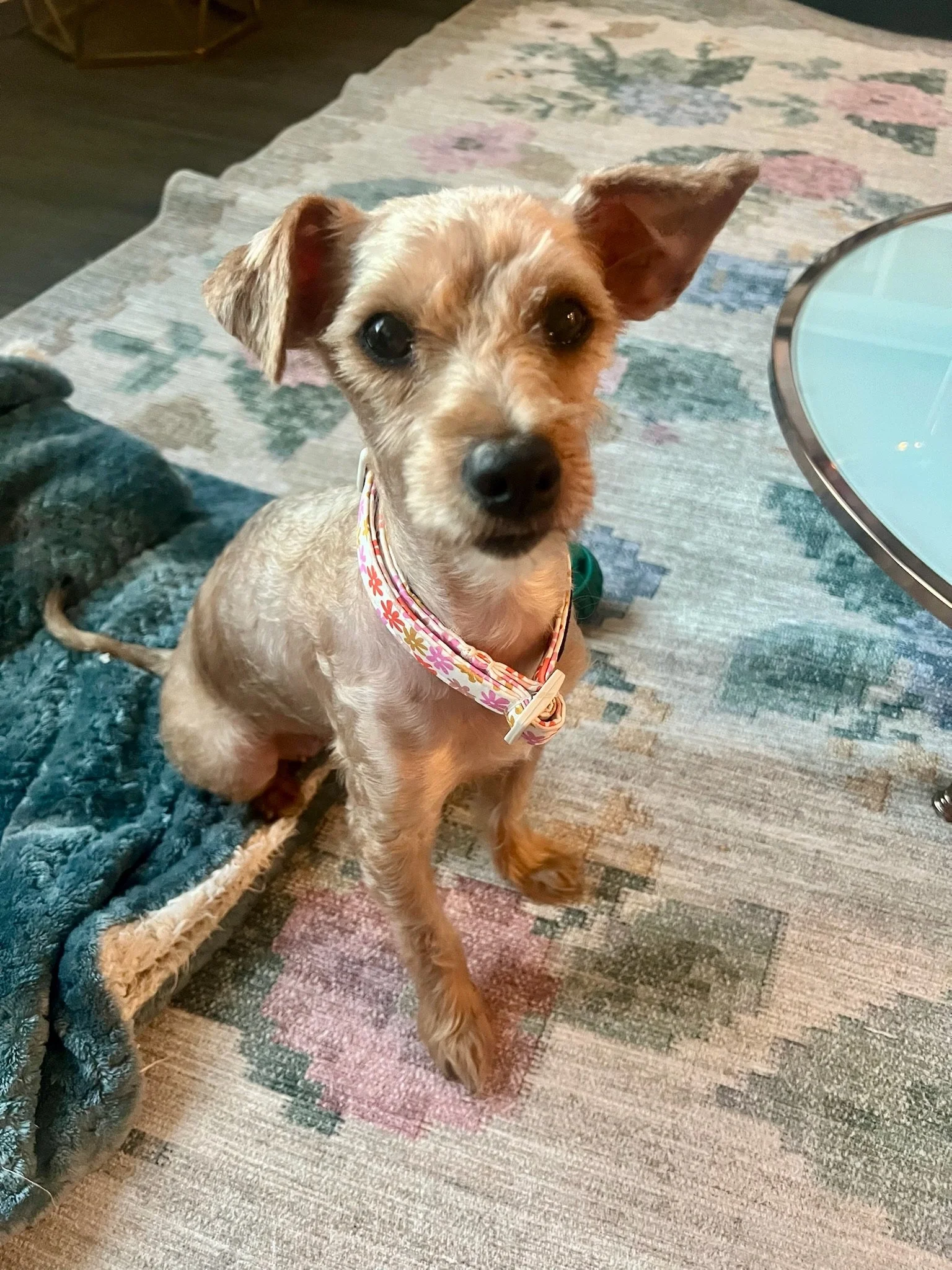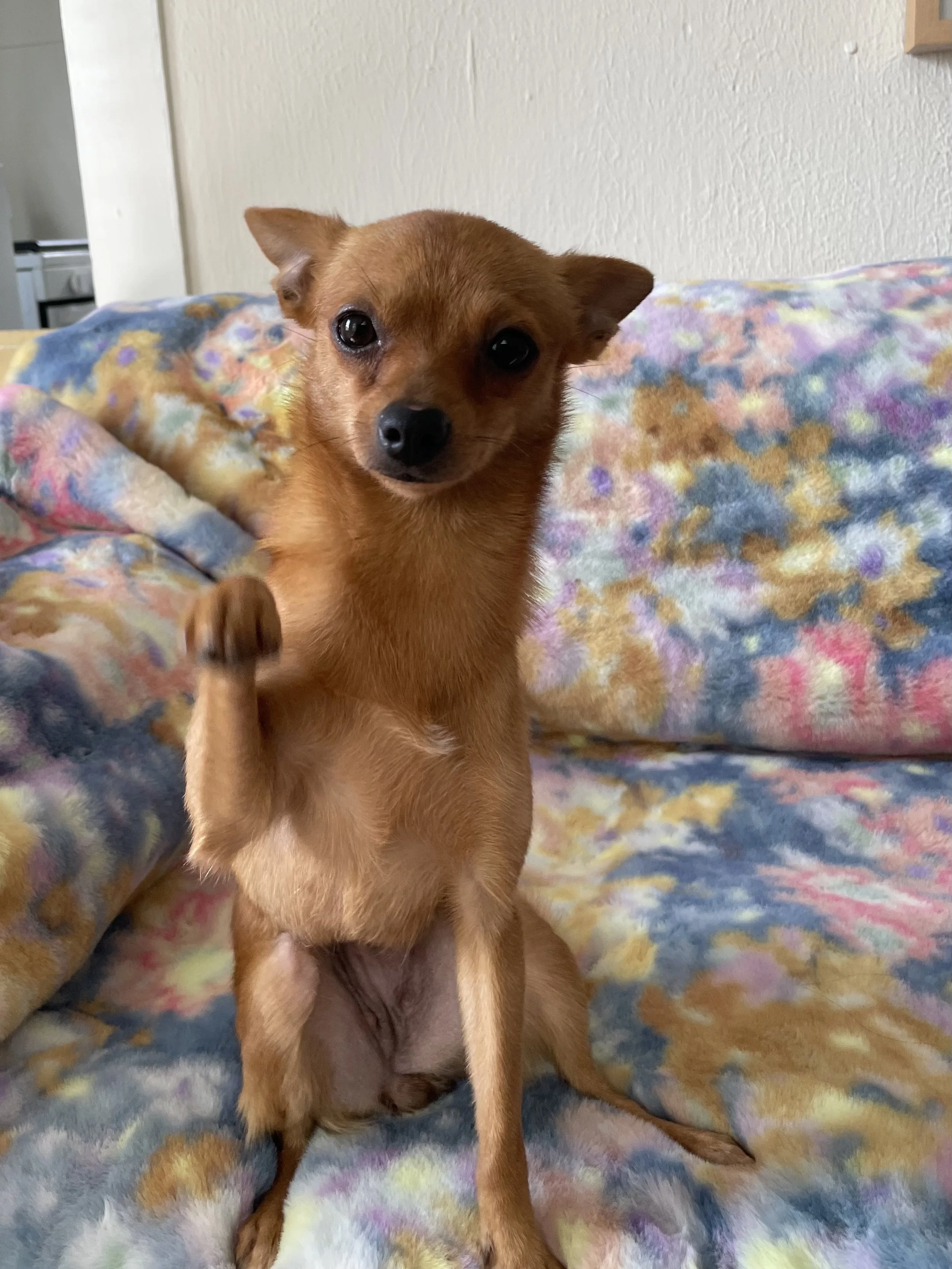 PixieAdopted! She is just the tiniest, sweetest little thing. 3 years old, 6lbs and an absolute love bug. Nervous in new settings but velcroed to her person! She would thrive in a home as a single dog or with another small confident canine pal.