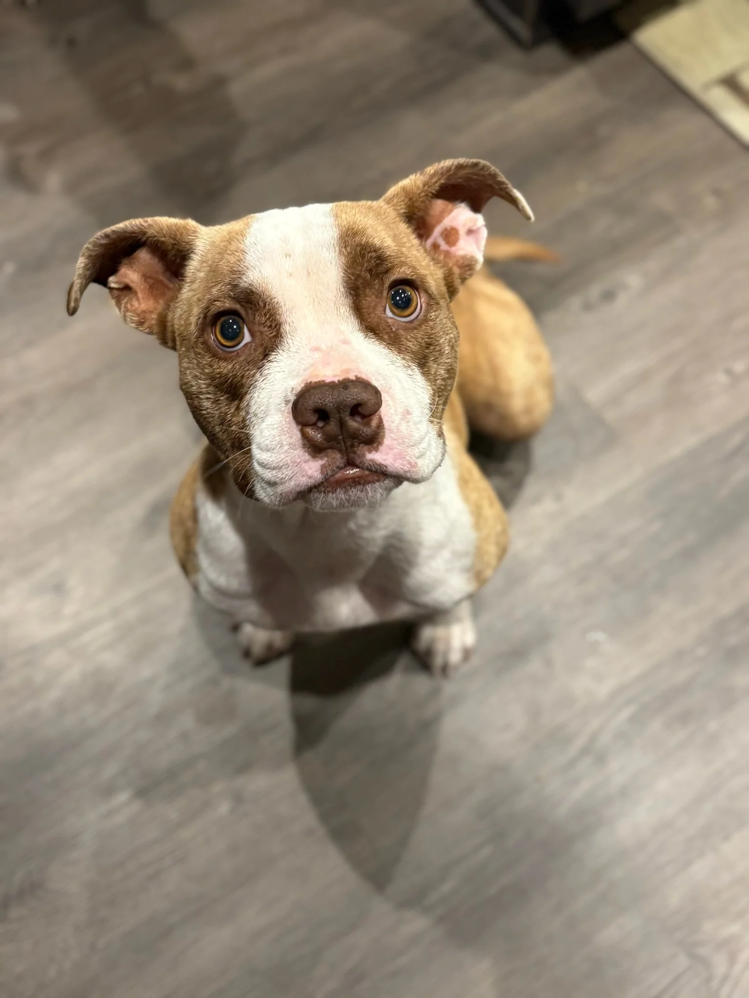 Adopted! At just 5 months old, Lily has gone through more than any puppy should but we are so excited to show her life on the other side. Lily is a very chill and easy going pup, but she needs a confident dog in the home to show her the ropes. Great with kids and dogs.