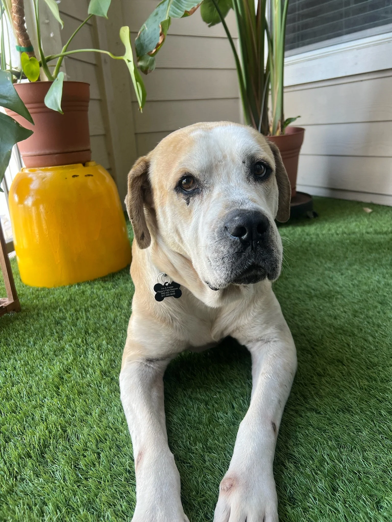 Adopted! His name says it all - he is a stunner, inside and out. This 1.5 year old cane corso/lab mix is just lovely. He is great with people and dog friends. He is medium energy - burts of playfulness in the morning but loves to chill the rest of the day. Crate trained. Potty trained.