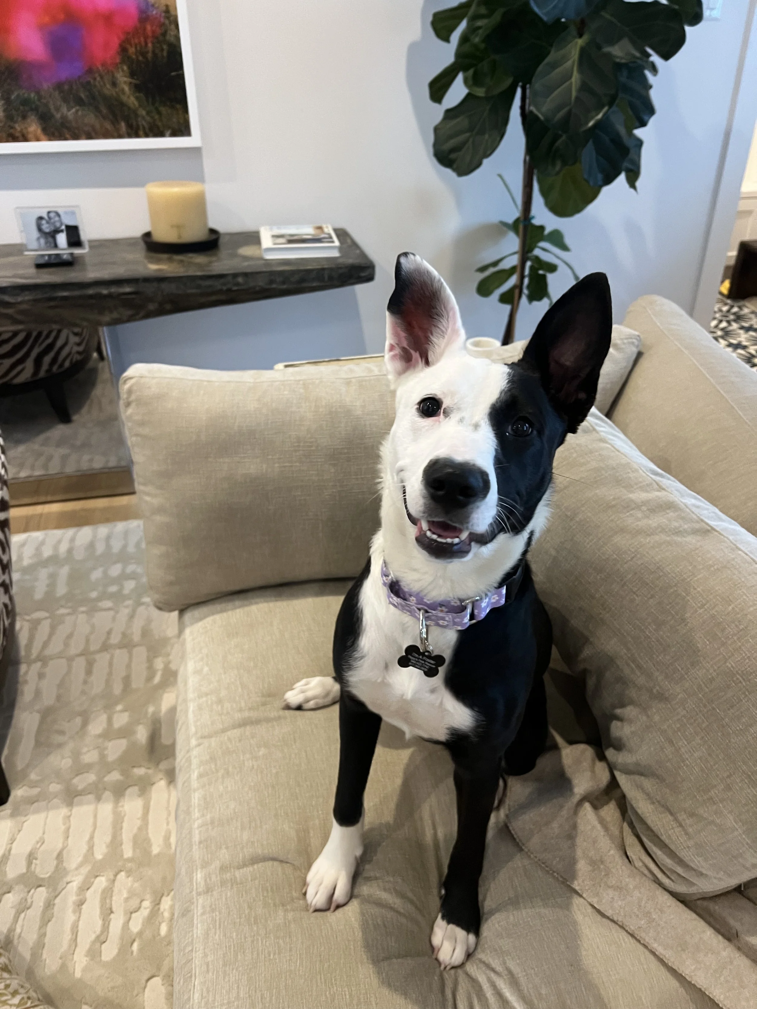 After a walk or a play session, Cleo is the most snuggly little girl. She loves to lounge on the sofa with you.